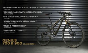 DIRT RAG Magazine recently reviewed the 2014 Genius 900 Premium. Here is what the editors wrote: "I spent several months aboard a 2013 Scott Genius 920 that we reviewed alongside it's 27.5 sibling. I had trouble getting the suspension to play nice so I was eager to see how it compared to the previous DT Swiss version. All I need to say is the difference is night and day."