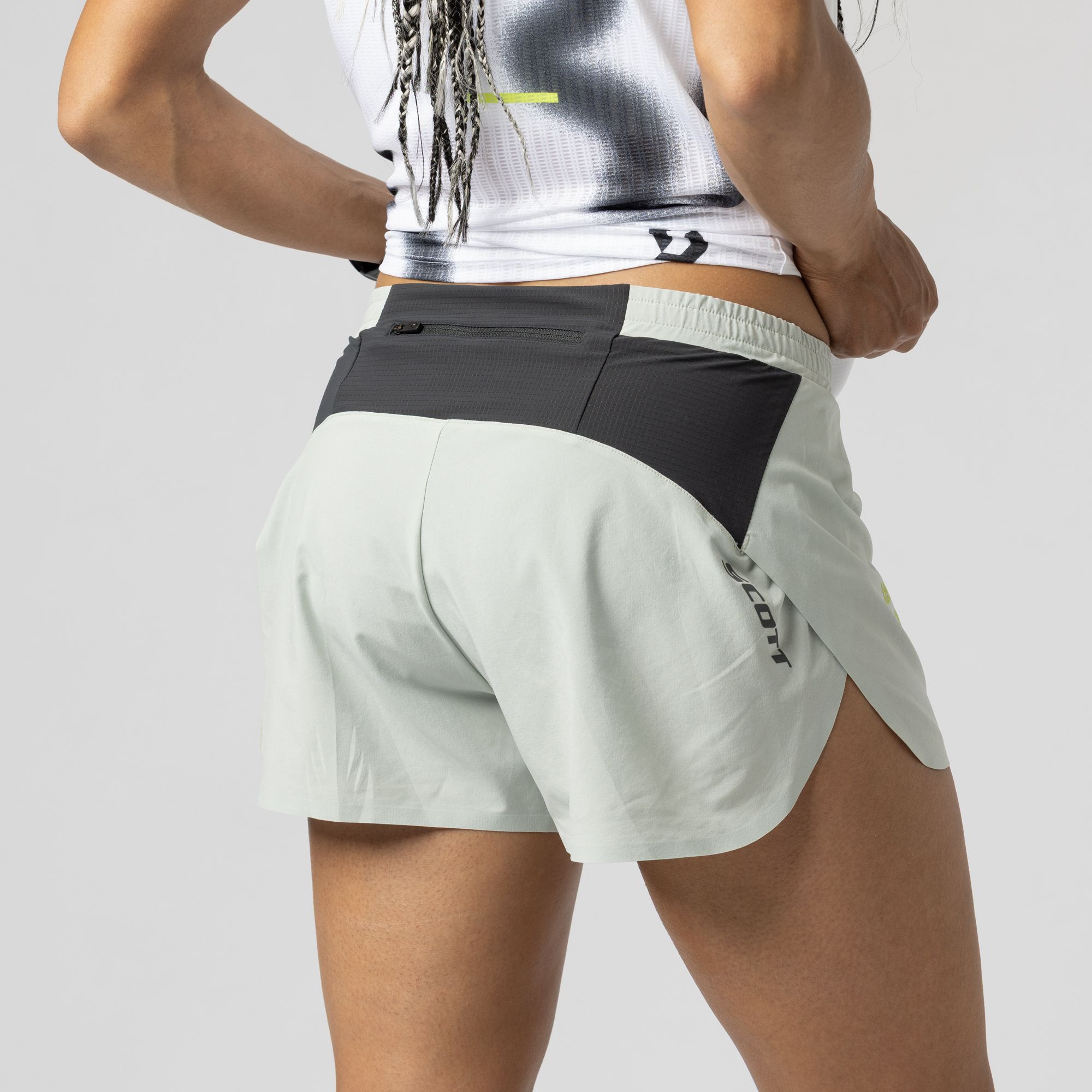 - Conçu pour la vitesse et l’agilité, le short fendu pour femme SCOTT RC Run est ultra léger et suivra tous tes mouvements. Idéal par temps chaud, ce short minimaliste est doté d’un slip intérieur en maille stretch intégrée pour plus de confort et de maintien. La poche arrière zippée te permet de ranger tes essentiels, tandis que la fente latérale à l’ourlet garantit une liberté de mouvement totale. Les détails réfléchissants améliorent la visibilité, ce qui en fait le vêtement idéal pour les courses matinales ou nocturnes.