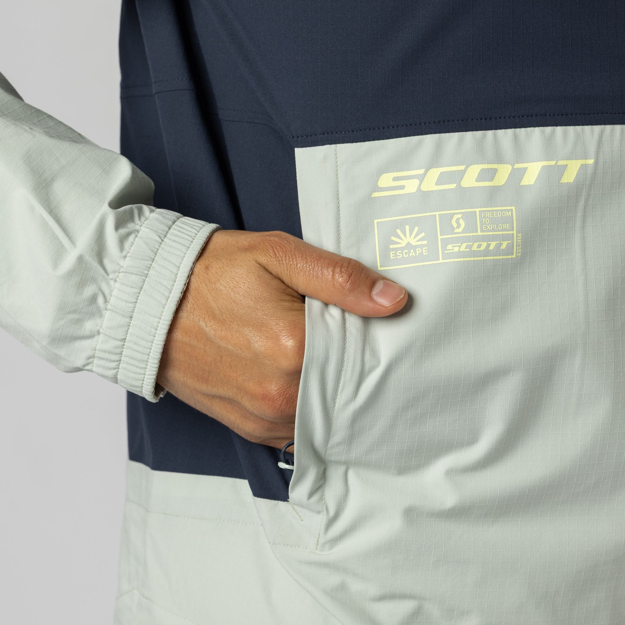 - La chaqueta SCOTT Explorair ESCAPE te ofrece un equilibrio óptimo entre funcionalidad y flexibilidad. Es ligera, está confeccionada con material de secado rápido y tiene un tratamiento duradero repelente al agua sin PFC; esta chaqueta es una prenda imprescindible al aire libre, ya sea para hacer senderismo o ciclismo, o para salir a pasear por la ciudad.