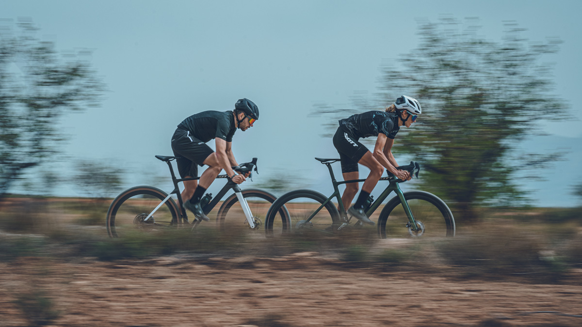 Pour la gamme Addict Gravel, l’objectif était clair : construire le vélo de gravel capable de venir à bout de n’importe quelle difficulté, de nous accompagner dans nos projets les plus fous et même d’aller taquiner les chronos lorsque l’envie nous prend. En somme, le vélo parfait, dévorant l’asphalte, se jouant des chemins les plus chaotiques tout en restant joueur à la moindre occasion. Choisir l’Addict Gravel c’est choisir la liberté, sortir de son garage sans savoir où cela nous mènera mais avec la certitude que le plaisir et la performance seront au rendez-vous !