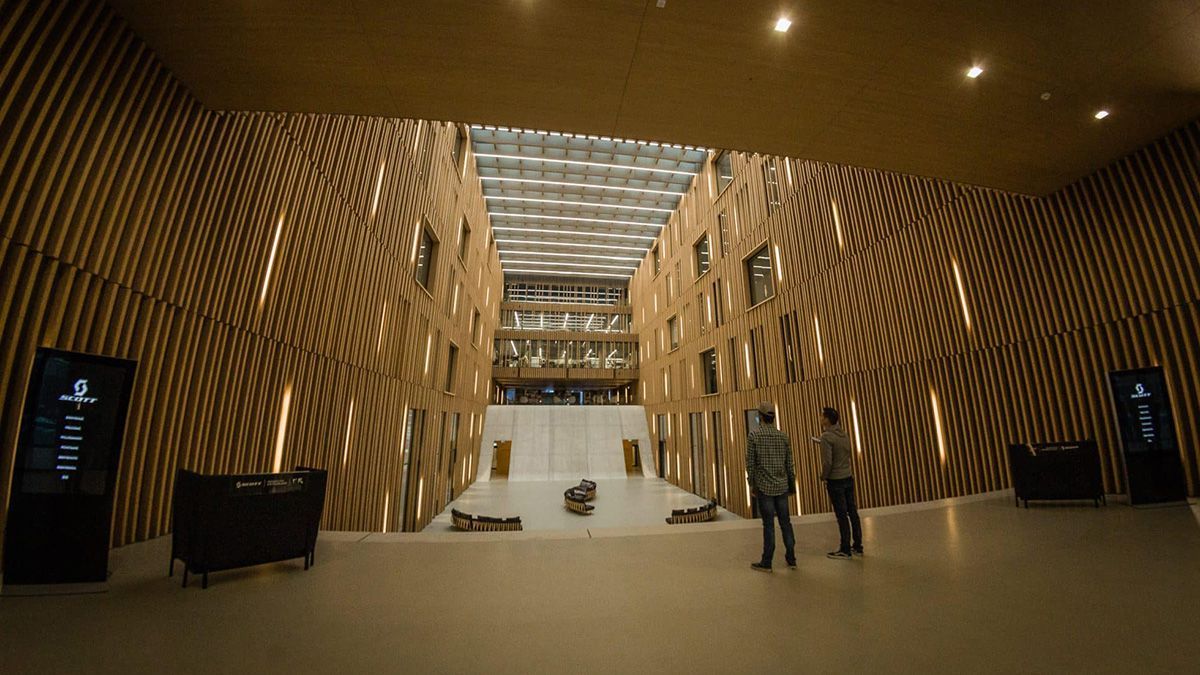Que l’on aime ou pas le choix des couleurs des matériaux ou encore de la forme du bâtiment du siège de SCOTT SPORTS à Givisiez, il faut bien avouer que la première fois sur place ne laisse pas indifférent.