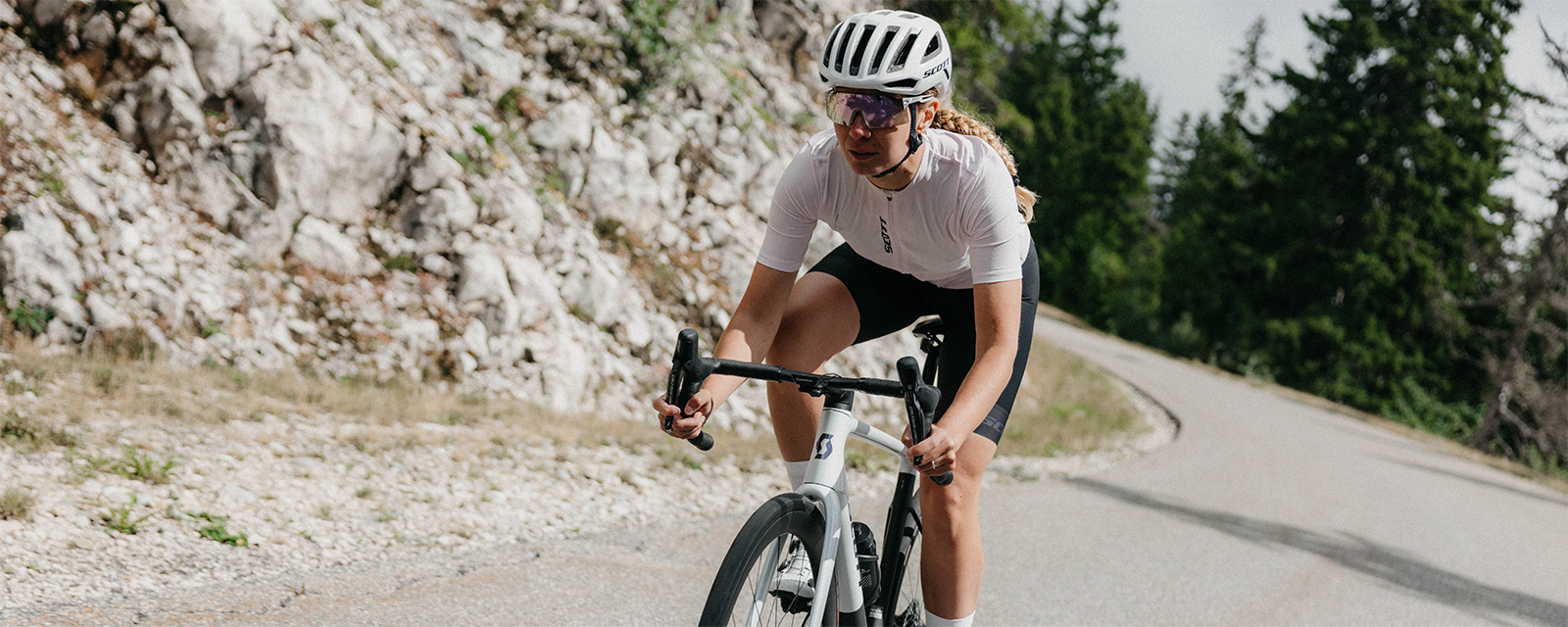 La gama de ropa y equipamiento para ciclismo de carretera de mujer para vestirte de la cabeza a los pies que te ofrece SCOTT te ayudará a volar sobre el asfalto y atraer todas las miradas. Gafas de sol, cascos, maillots, culottes con tirantes y zapatillas: equípate con estilo para disfrutar a tope de todo lo que ofrece el ciclismo.